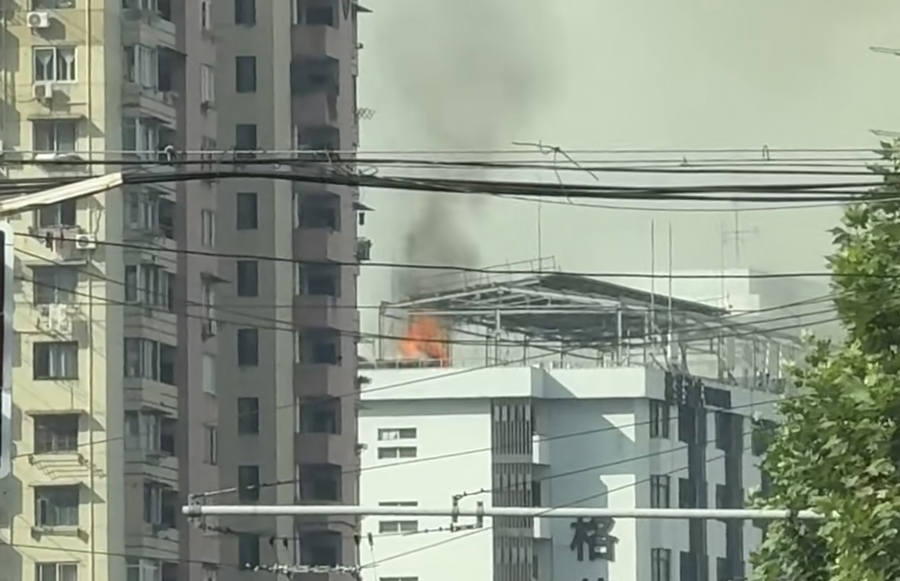 今天(10月1日)上午9时,有市民向记者报料称,杨浦区长阳路双阳路路口一建筑楼顶发生火情。事发后,多辆消防车到场处置。所幸的是,这起事故并未造成人员伤亡。